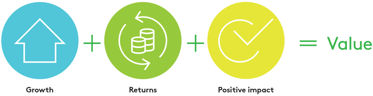 We seek to deliver superior and sustainable value for our investors, while delivering a positive impact for all our stakeholders. We set ourselves challenging targets, and aspire to double our earnings every five years.
