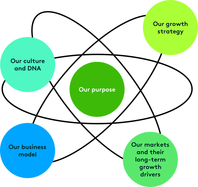 Our Sustainable Growth Model works by finding and acquiring great companies that are aligned with our purpose. We look for companies that deliver strong growth, high returns and positive impact in global niche markets powered by one of our long-term growth drivers. Each company is managed by its own board which make decisions about how to grow its business in a way that is right for them, balancing short-term profitability with long-term growth.